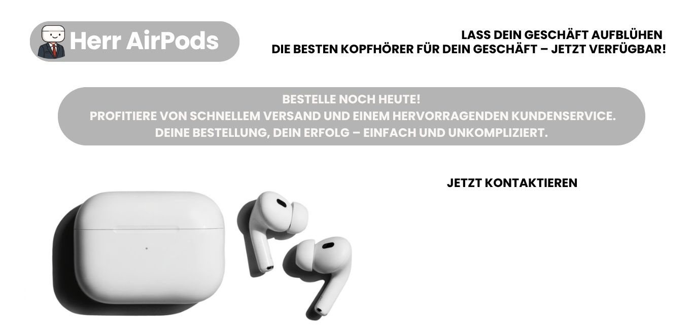 Willkommen bei Herr Airpods– Ihrem zuverlässigen Partner für hochwertige Kopfhörer. Wir sind ein Unternehmen, das sich darauf spezialisiert hat, Ihnen nicht nur erstklassige Produkte anzubieten, sondern auch einen außergewöhnlichen Service zu bieten, der Ihre Erwartungen übertrifft.